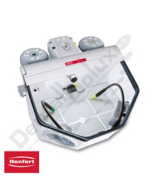 2 105,62 €Vario basicSableuse rotative et micro sableuseSilos non fournis Combinaison compacte d'une sableuse rotative et d'une micro-sableuse. Elle représente une solution économique et polyvalente pour tous les travaux de sablage réalisés dans le domaine de la technique dentaire.AvantagesPossibilité d'ajouter des silos pour disposer de jusqu'à 4 silos de micro-sablage.Consommation d'abrasif réduite de 50 % grâce au système d'aspiration intelligent (seules les poussières fines inutilisables sont éliminées).PerfectView: Technologie à DEL unique en son genre assurant un contraste optimal sur tous les objets.DétailsLa buse de sablage rotatif avec principe Venturi intégré est réglable en fonction des besoins pour garantir un sablage régulier et efficace.Vitre revêtue hautement résistante.Manchettes interchangeables et lavables.Boîtier métallique revêtu par poudrage.Sélecteur de silo interne pour chaque silo de microsablage, pour le mode de sablage rotatif ou la sélection d‘un appareil externe fonctionnant à l‘air comprimé.Pièces à main IT avec buses interchangeables.Régulateur de filtre avec séparateur d‘eau manuel pour le nettoyage de l‘air comprimé.Une buse en carbure de bore très résistante est disponible en option.Orifice d‘entrée et raccord pour un appareil fonctionnant à l‘air comprimé (par ex. un burin de démoulage).