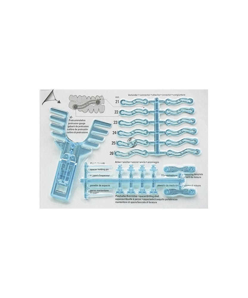 Carte avec de connecteurs, supports d'espaceur, espaceur/douille à percer, sl-gabarit de potrusion, gabarit de mesure, ancre.
