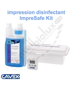 disinfectant for alginate, polyether and silicone impressionsFeaturesonly 3 minutes to kill bacteria, fungi and virusesno negative influence on the impression surfacehighly concentrated thus saving storage spaceone litre of Cavex ImpreSafe equals 33 litres ready-to-use disinfection fluidaldehyde free and has a neutral smellavailable as a complete system for the dental practicecomplies with DGHM guidelines and EN 1040, EN 1275, EN 13727, EN 13624, EN 14561 and EN 14562