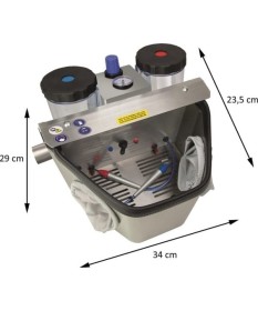 - ERGOMISCH: Dankzij het ontwerp kunnen de armen worden bewogen, waardoor het praktisch is om staand of zittend te gebruiken. Dankzij de hefbare uittrekelementen kunnen polijstborstels gemakkelijk worden geplaatst en verwijderd. De solide, stevige constructie van de machine (12 kg) en de grote voet op rubberen antislipvoetjes zorgen voor een goede stabiliteit.TECHNISCHE SPECIFICATIES