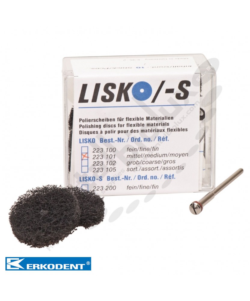 Order no.223100Description (name)LISKO polishing discs, fine, whiteadditional infoContents10Unit of contentspiecesMedical device infono medical deviceCE-labeling infoitem is not labeled CEHazardous material infoitem is not hazardousCountry of originorigin of item is the EUApplication fieldExcellently suited for grinding and smoothing flexible acrylics, silicones or other soft materials. They are also suited for prepolishing metal and other acrylics.UsageMax. numer of revs. 4,000/min. Especially in case of fine grain size grind under low pressure only. Wear protective glasses.Product-descriptionSoft, elastic polishing discs. Open structure, unique for the elaboration of soft materials. Available in 3 different grain sizes. The discs adapt flexibly to the contours of the surface which has to be worked. They distinguish by only small heat development, do not smear and ensure constant results due to particles which are polished off steadily.