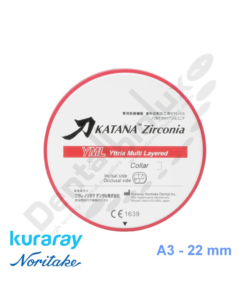 De Katana Zirconia YML-schijven (Yttria Multi Layered), ontwikkeld door Kuraray Noritake Dental, vertegenwoordigen de nieuwste generatie hoogwaardig zirkoniumoxide.